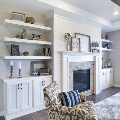 The clean and simple look of white, gray, and natural wood tones on a classy door style is what the homeowner was looking for. With plenty of style and storage, without complexity, this home is perfect for their growing family.